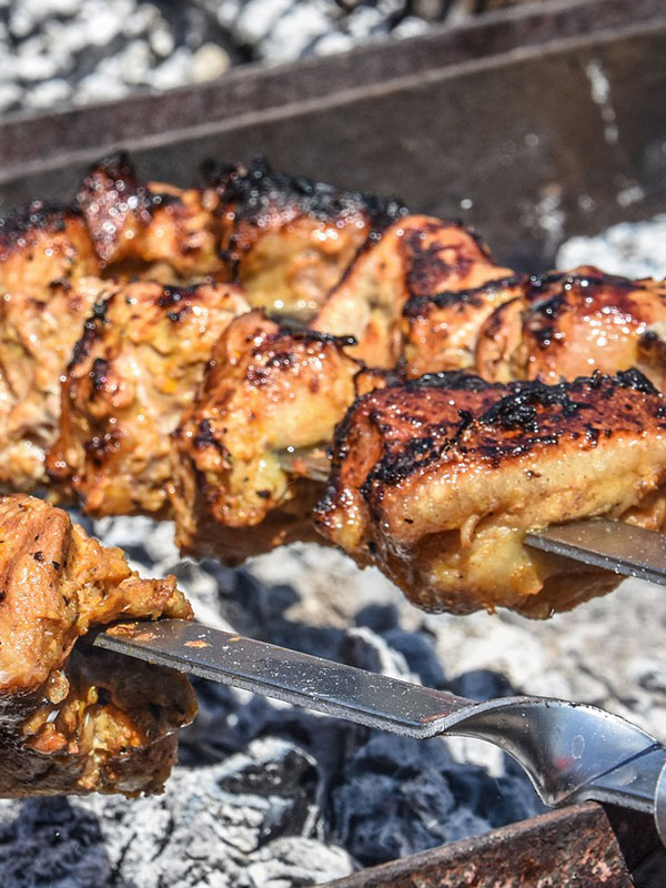 Beat the chills by savouring the delicious piping hot barbeque done outdoors by grilling meat over charcoal on a barbeque grill.